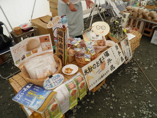 米崎町の産直ふれあい市。Sさんの店。コシヒカリせんべいを売っています。